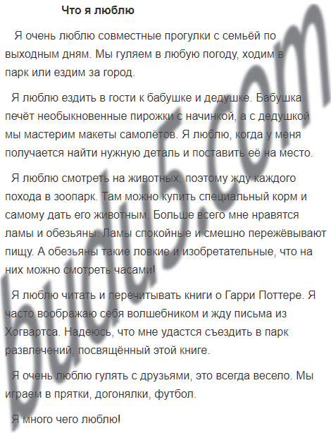 Сочинение. Напиши сочинение о себе на тему ”Что я люблю“. Но сначала подготовься к этой работе.