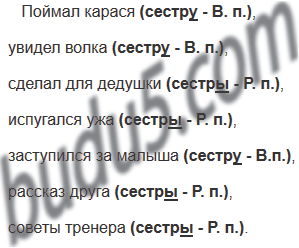 Это одушевлённые существительные мужского рода. Проверяй их падеж (В. п. или Р. п.) по окончанию слова сестра.