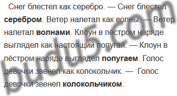 Снег блестел как серебро. Ветер налетал как волны. Клоун в пёстром наряде выглядел как настоящий попугай. Голос девочки звенел как колокольчик.