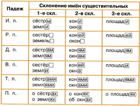 Понаблюдайте за тем, какие окончания появляются у имён существительных разных склонений во множественном числе. Что вы заметили?