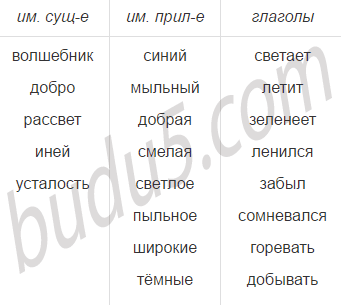 Распредели слова в группы по частям речи: