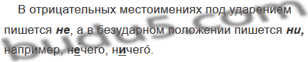 Прочитайте пары слов и объясните, когда в отрицательных местоимениях пишется не, а когда — ни. Ответ запишите в виде правила с примерами.