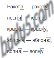 Подберите пять существительных 1-го склонения и запишите их в именительном и винительном падежах. Падежные окончания выделите.