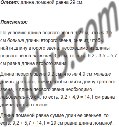 Ломаная состоит из трёх звеньев. Длина первого звена 9,2 см, что на 3,5 см больше длины второго звена и на 4,9 см меньше длины третьего. Найдите длину ломаной.