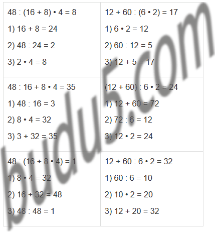48 : 16 + 8 • 4 = 1 12 + 60 : 6 • 2 = 32