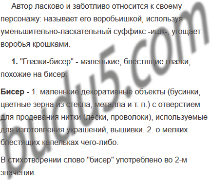 1. Как вы понимаете предложение «Глазки — бисер»? Что значит слово бисер? В каком значении оно употреблено в этом стихотворении?