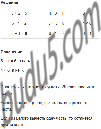 | 5 + 1 = 4 | 6 - 1 = 5 | 6 > 1 |