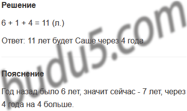 Задание № 9. Год назад Саше было 6 лет. Сколько лет ему будет через 4 года?