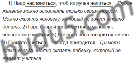 1) Надо накл..нит(?)ся чтоб из ручья напит(?)ся. 2) Гора с горой (не)сходит(?)ся а человек с человеком сой-дёт(?)ся. 3) Доброе слово говорит(?)ся смело. 4) Грамоте учит(?)ся — всегда пригодит(?)ся.