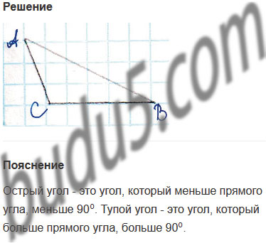 Задание № 12. Начерти треугольник так, чтобы два угла у него были острыми, а третий - тупой. Проверь правильность построения с помощью угольника.