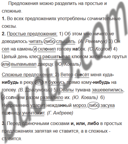 3. Сделайте вывод о постановке знаков препинания перед одиночными союзами и, или, либо в простых и сложных предложениях.