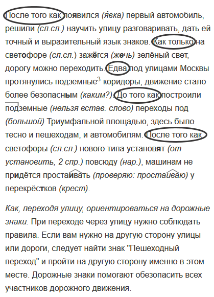 Из данных простых предложений составьте сложноподчинённые, употребляя подходящие по смыслу подчинительные союзы: после того как, как только, едва, до того как, перед тем как, прежде чем. Между частями сложного предложения поставьте запятую. •Подчинительные союзы заключите в овал. •Для мальчиков: запишите названия современных средств передвижения; для девочек: расскажите, как, переходя улицу, ориентироваться на дорожные знаки.