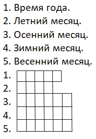 Прочитайте. Впишите в клетки слова, соответствующие данным значениям. Каждое такое слово заканчивается мягким согласным звуком.