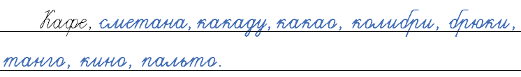 Кафе́, авокадо, метро, пальто, эскимо, кенгуру, колибри.