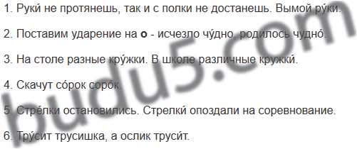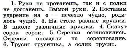 Слова из задания (руки, кружки, сорок, стрелки, трусит) являются омографами. Их значение зависит от ударения.