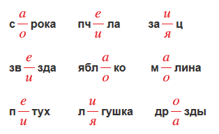 Слова распределены в группе в зависимости от пропущенной буквы.