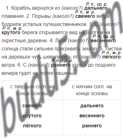 2. Выпишите отдельно прилагательные с твёрдым и мягким согласным на конце основы. Наблюдайте на этих примерах за окончаниями родительного и винительного падежей.