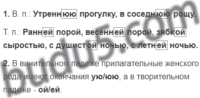 1. Выпишите из упражнения 110 прилагательные женского рода в винительном падеже, а из упражнения 108 прилагательные женского рода в творительном падеже вместе с теми существительными, с которыми они связаны по смыслу.