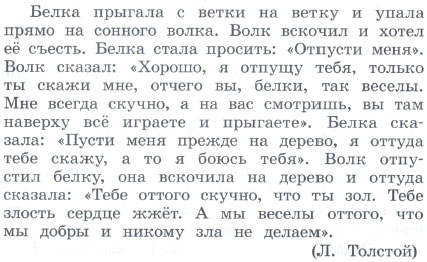 1. Прочитайте. Найдите сначала слова белки и волка, а потом слова автора.